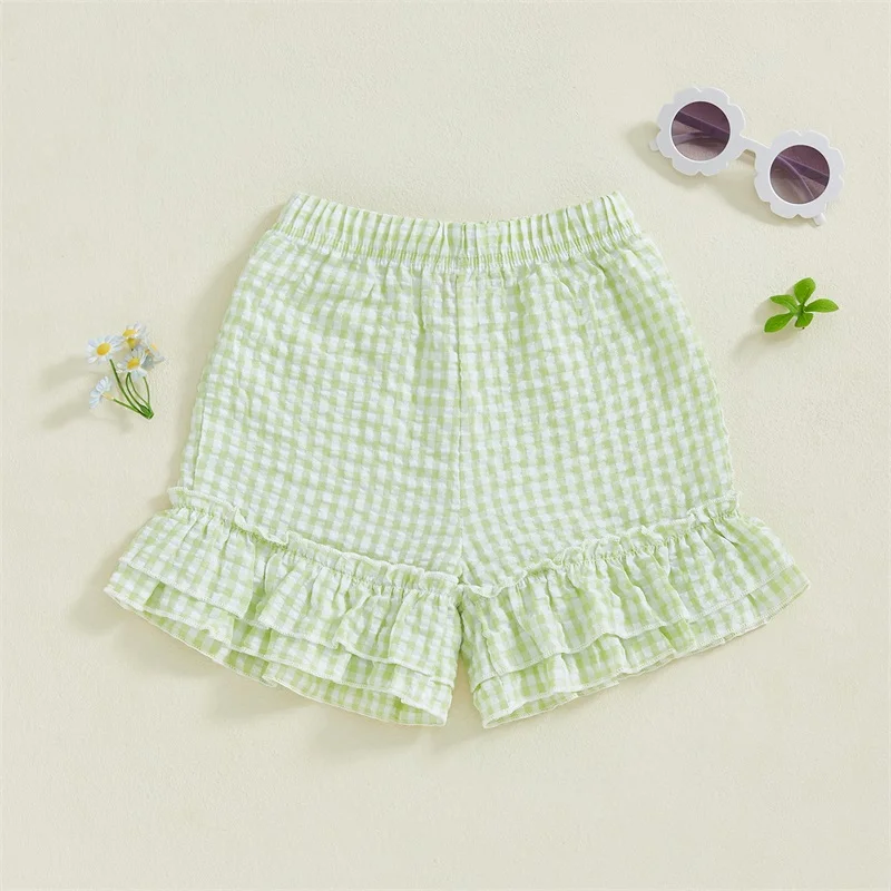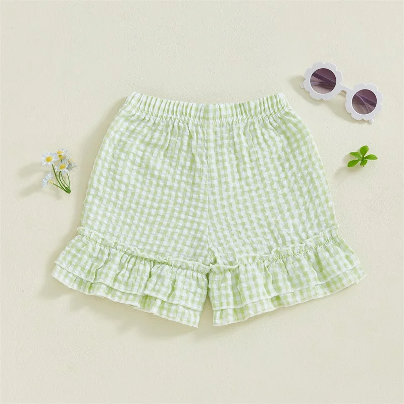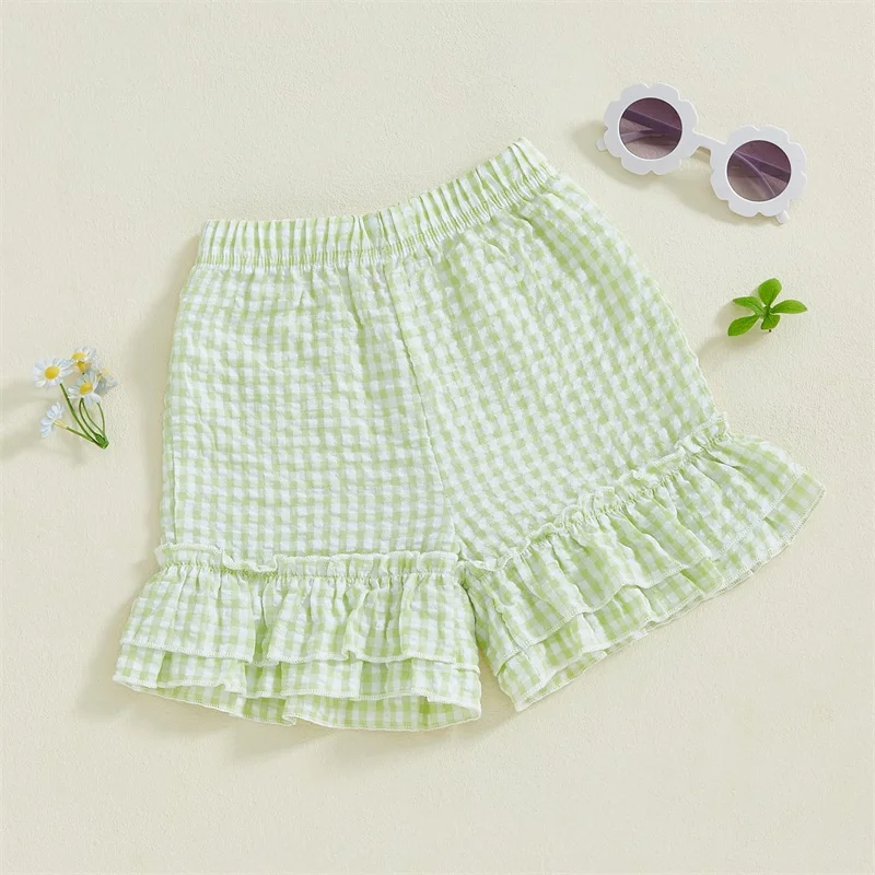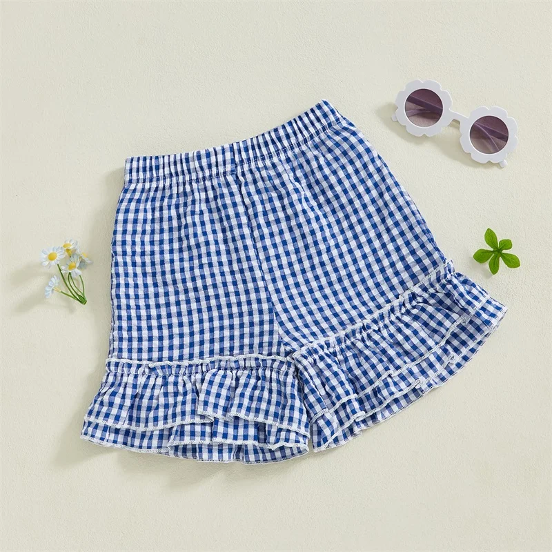 Toddler Girl Plaid Shorts Ruffled Hem Elastic Waist Wide Leg Short Pants for Summer