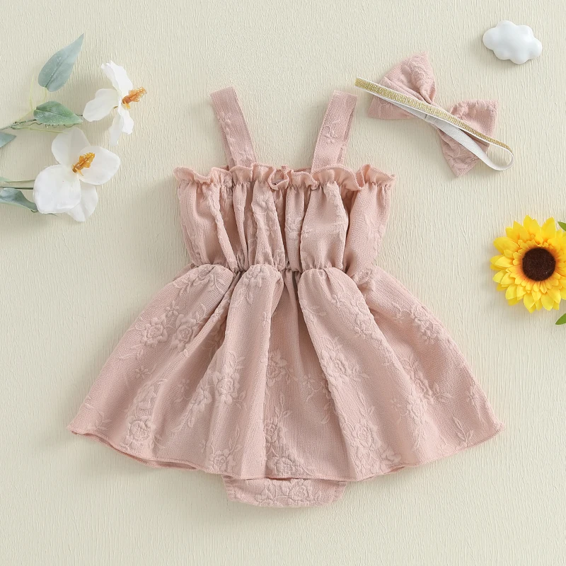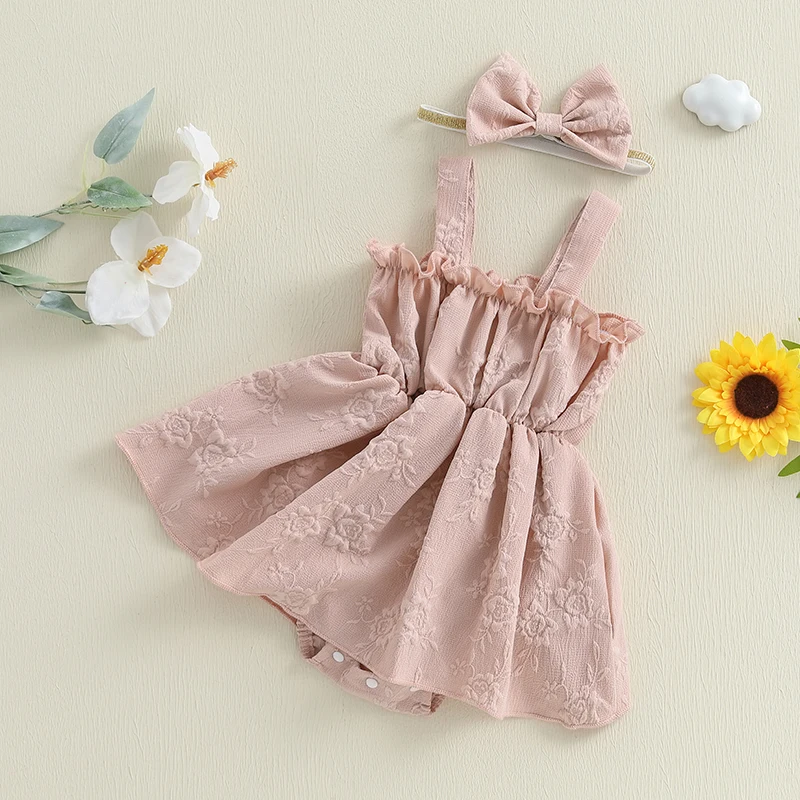 Baby Girl Summer Outfits Sleeveless Square Neck Romper Dress with Headband Set Newborn Clothes